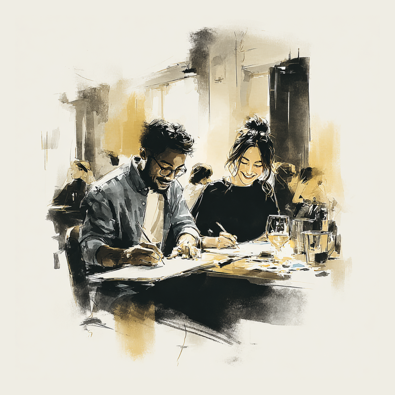 The evening setting naturally creates a calmer atmosphere, helping participants settle into the experience and get the most out of the guided creative reset.