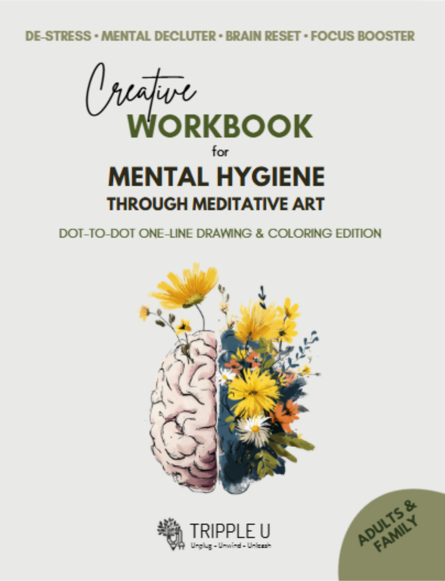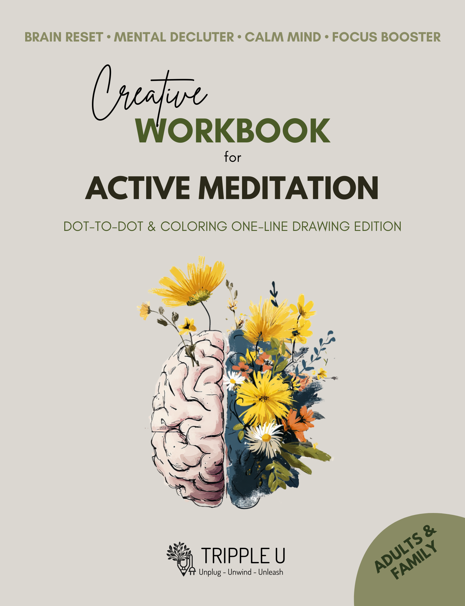 Through dot-to-dot, repetitive drawing, and colouring with 1–3 colours without logic or planning, the mind naturally slows down, mental noise fades, and a calm, focused state emerges. No artistic skill. No rules. No pressure. Just a pen, a page, and a few minutes to reset your brain.